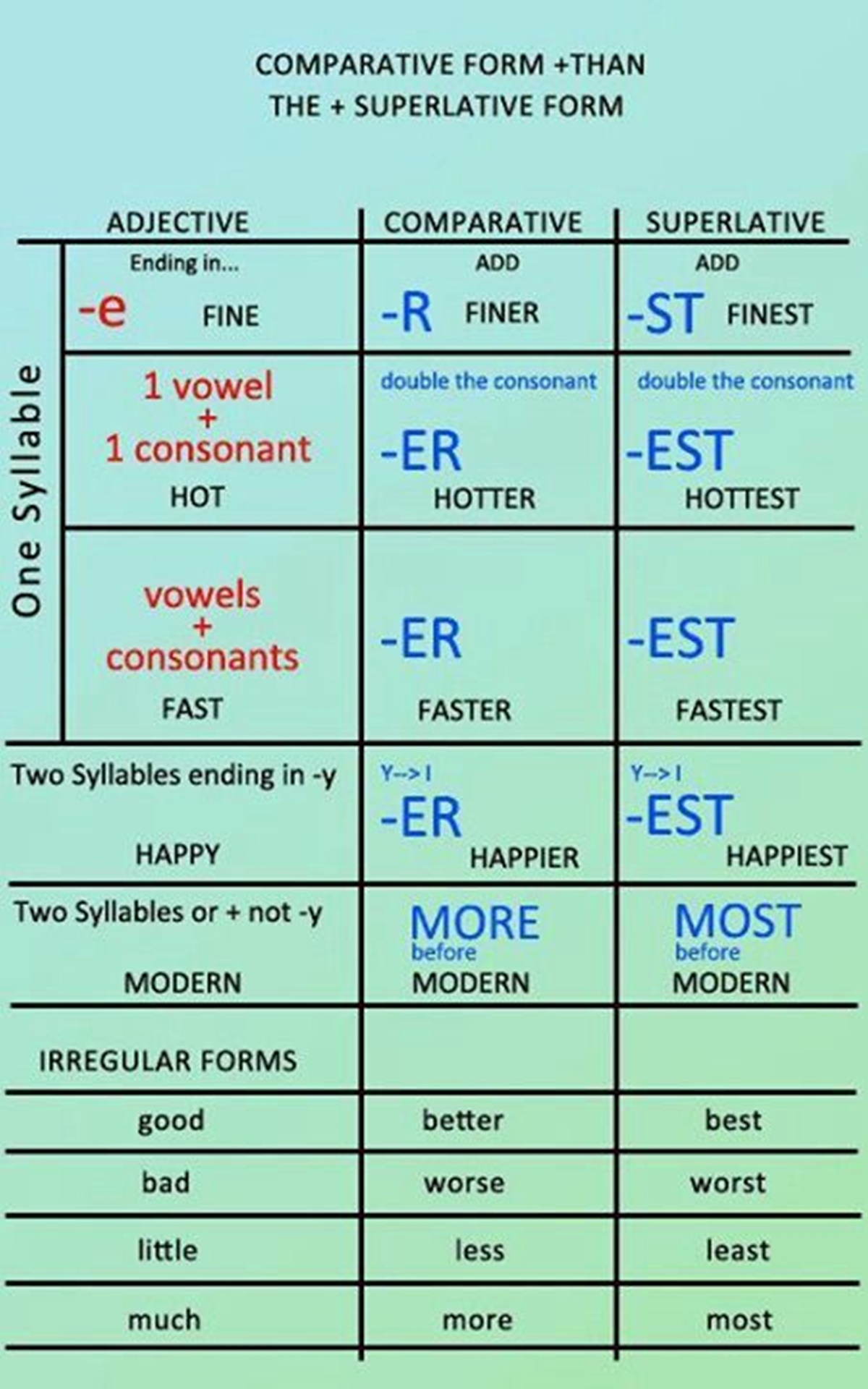 Optional Writing: Write 5 sentences comparing your family/friends/hobbies using comparatives and superlatives.HomeworkWrite a short paragraph: “My Favorite Things” – Use at least 3 comparatives and 3 superlatives (e.g., My brother is taller than me, but I am the fastest runner in my family).This lesson uses visuals for engagement and builds from rules to real communication. Have fun teaching!