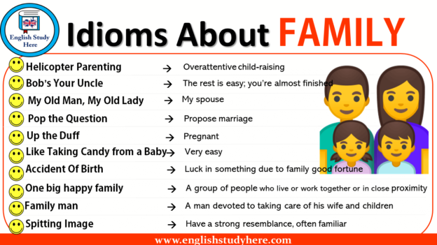 Practice using family-related idioms naturally while talking about real or imaginary family situations.